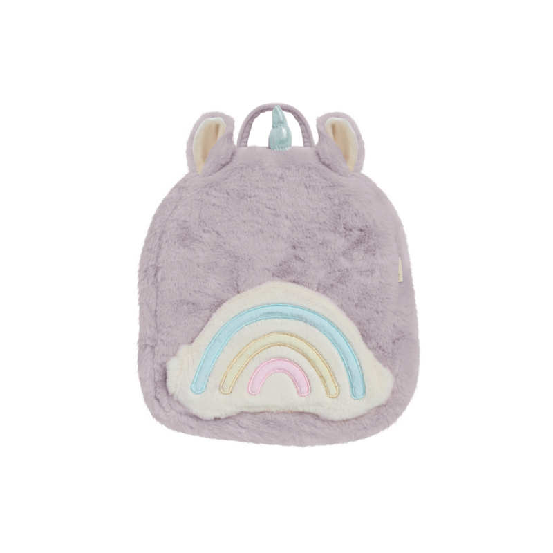 Hopalong Unicorn Backpack in is ready for every little adventure. With soft unicorn ears, a velvety lining, and a shimmering iridescent horn, it’s as cuddly as it is enchanting. The plush rainbow front pocket is perfectly sized to carry a tiny doll, with elastic loops and poppers to keep them snug, plus a secret space for little treasures. A whimsical backpack made for playtime and daydreams alike.