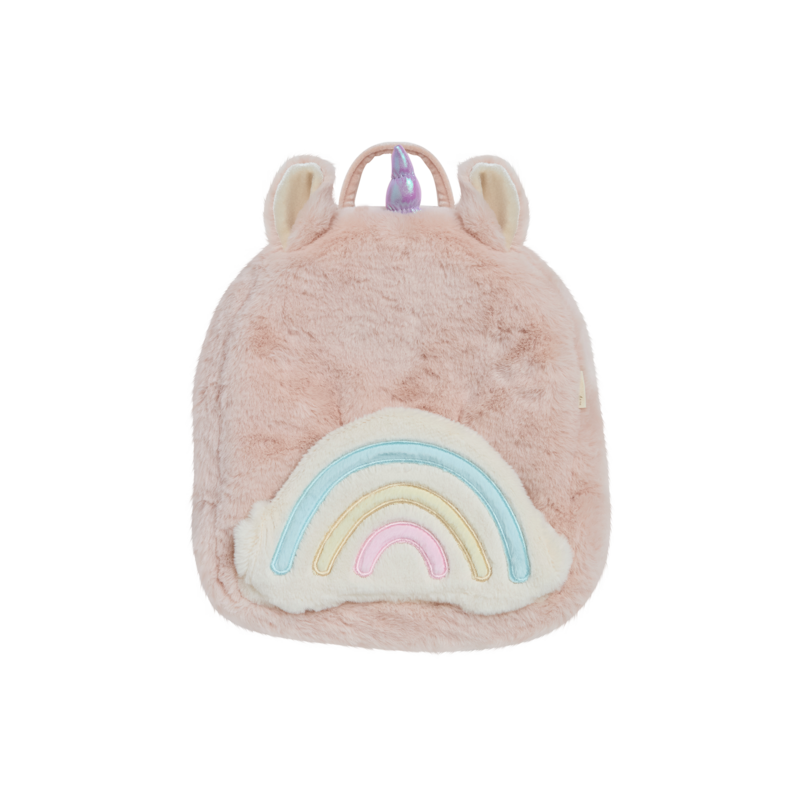 Hopalong Unicorn Backpack in is ready for every little adventure. With soft unicorn ears, a velvety lining, and a shimmering iridescent horn, it’s as cuddly as it is enchanting. The plush rainbow front pocket is perfectly sized to carry a tiny doll, with elastic loops and poppers to keep them snug, plus a secret space for little treasures. A whimsical backpack made for playtime and daydreams alike.