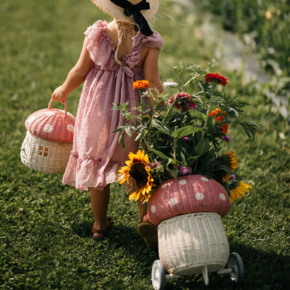 Meet our whimsical Mushroom Luggy in Musk. It exists in the world between practical and fairytale and is perfect for lugging about at home or on the go.