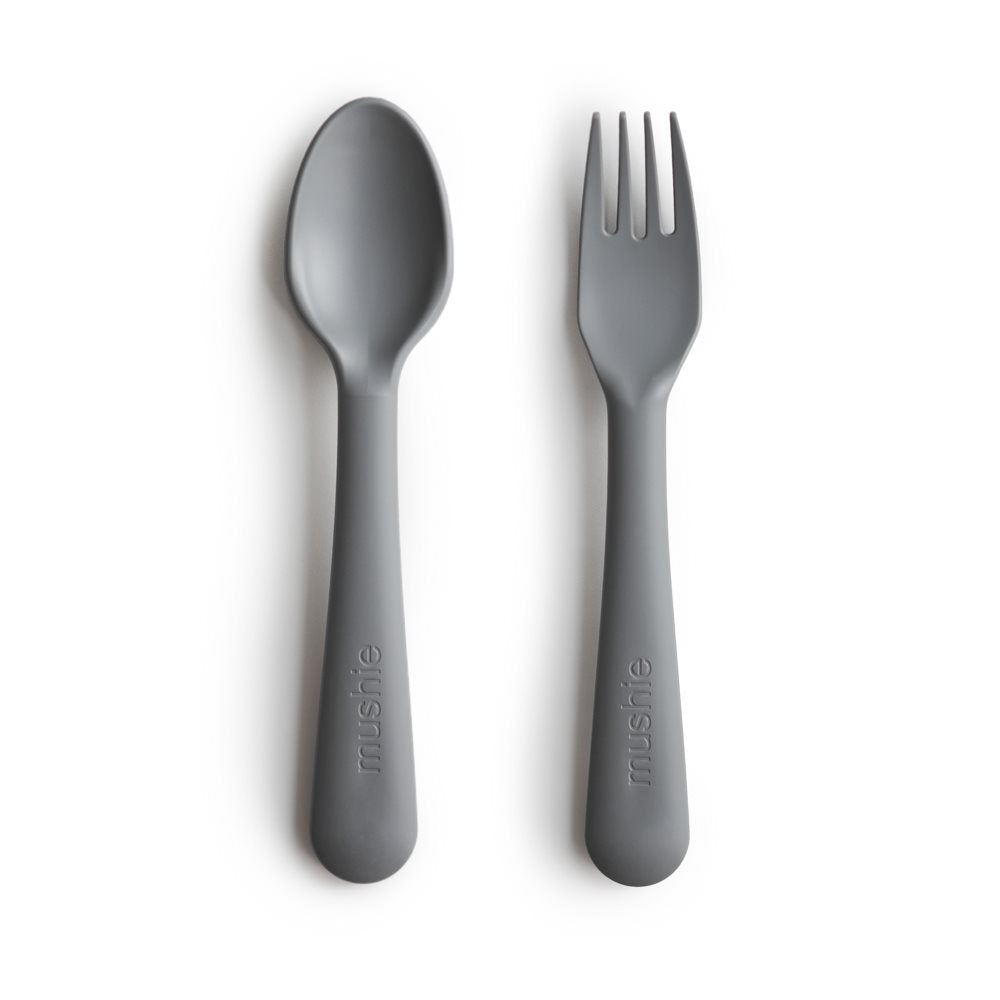 Introduce your baby to solid food with Mushie’s plastic fork and spoon set!