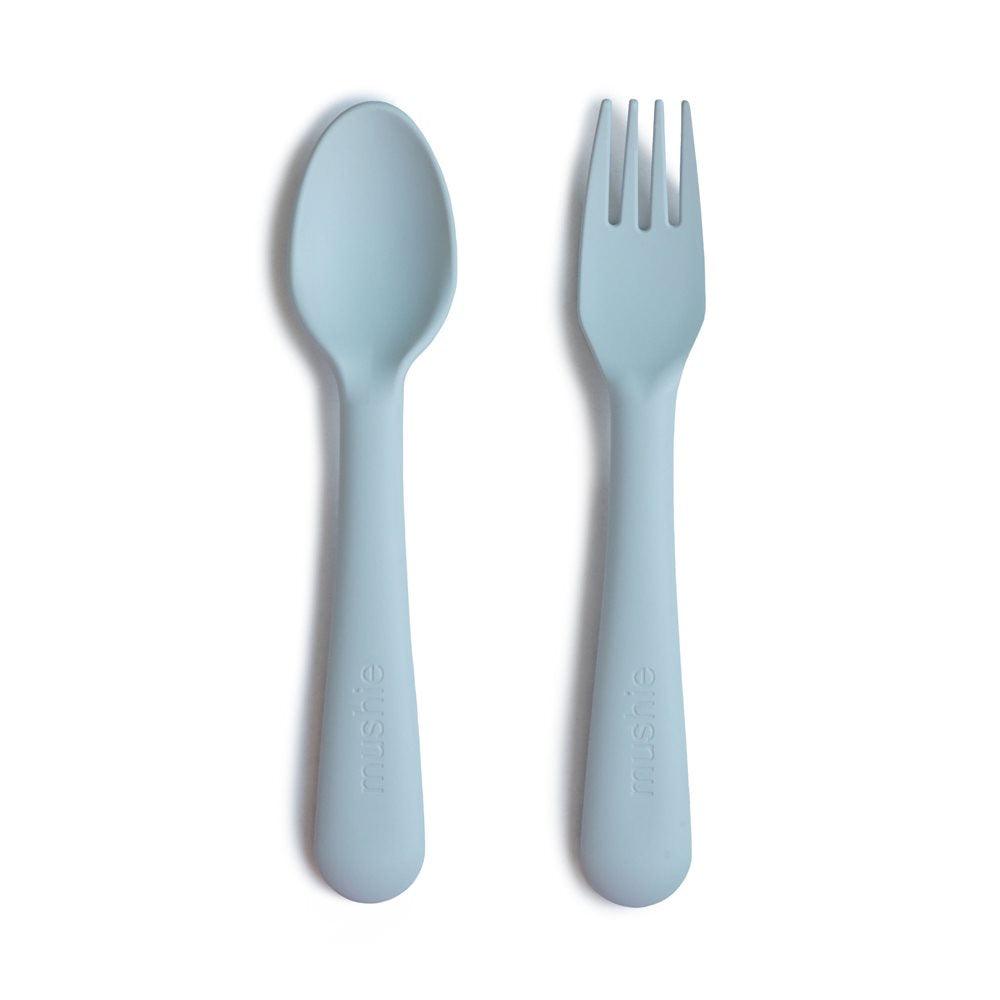 Mushie Fork & Spoon Set - Powder Blue - Pudgy Fingers