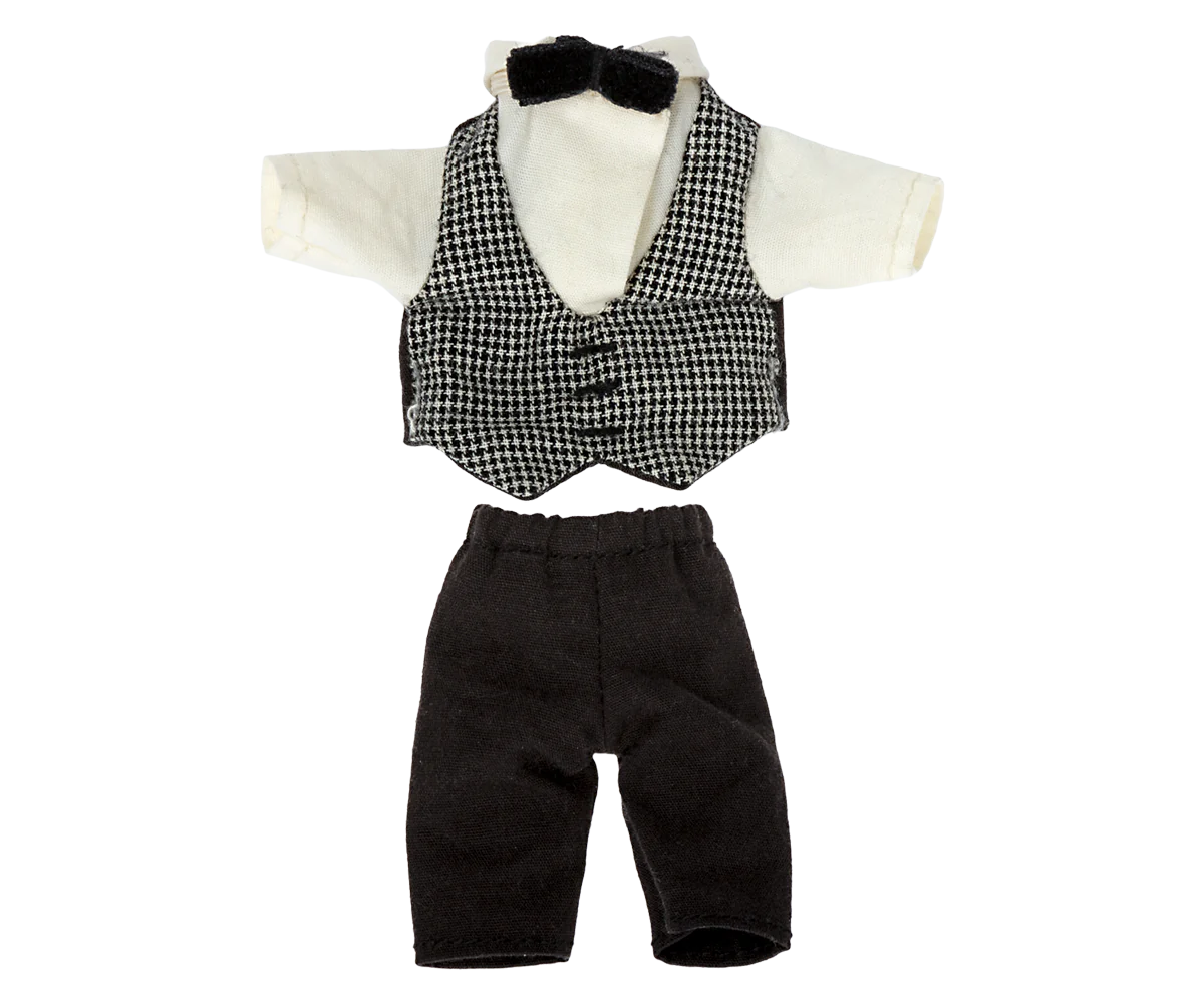 The waiter mouse is the perfect helper at any party or the royal family. The mouse is dressed classically and has magnets in the hands, so it is easier to hold all metal utensils.