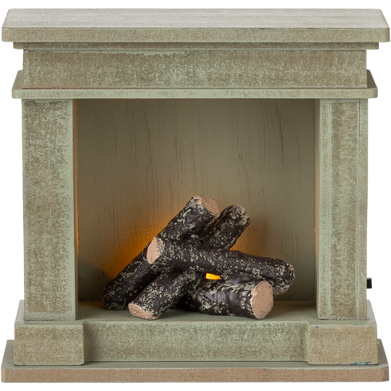 Use this wooden fireplace to warm your miniature home. It has an authentic look and a vintage finish. Remember to turn it off when your friends go to bed. The product comes without a battery.