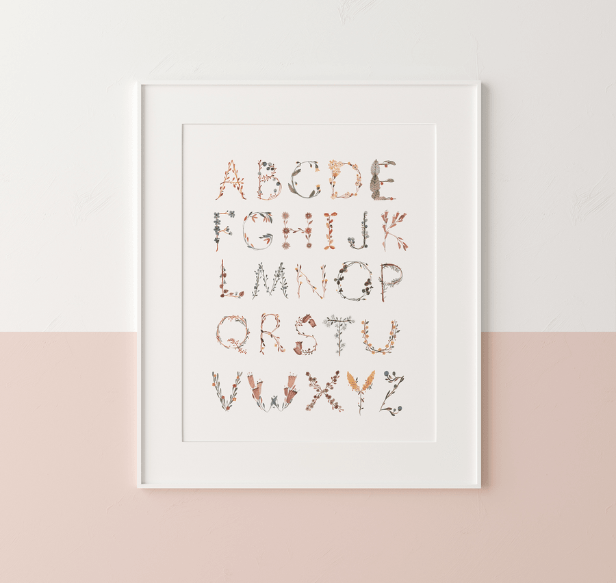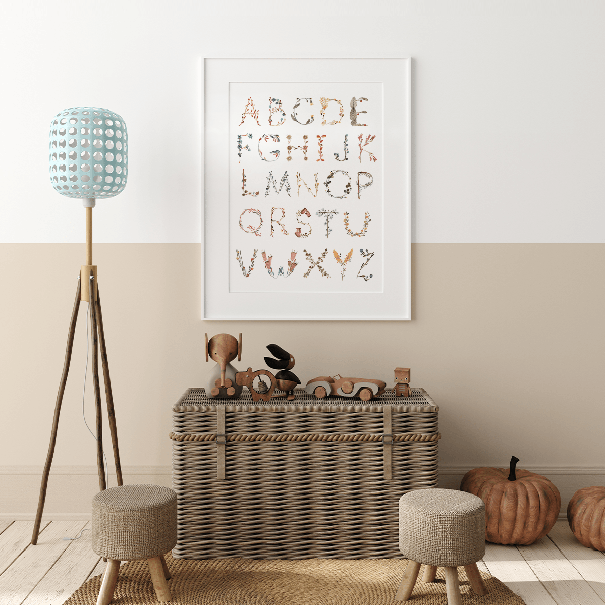 Introduce your child to their ABCs with this print that's awash in soft colors and soothing florals. Designed in Sweden, it's the first in a series of prints that combine whimsical themes with modern design.