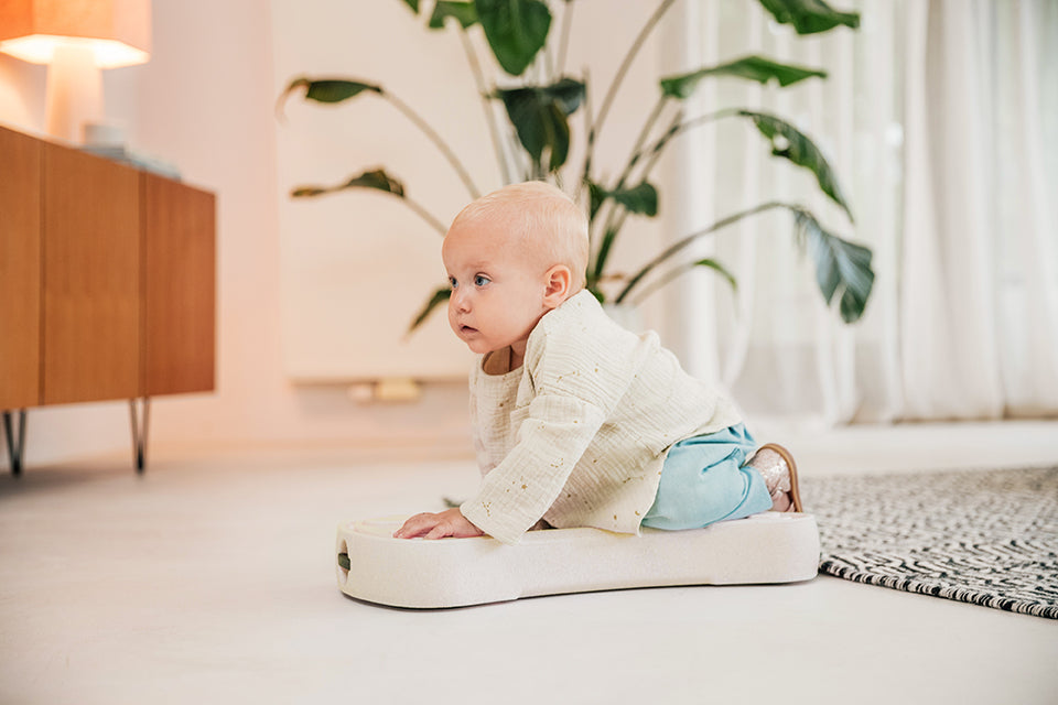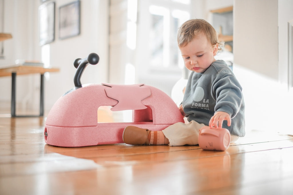 Thanks to the removable and reversible lower plate, the baby slide adapts perfectly to your child's needs. The gliding pads on the underside provide stability for the first attempts at standing and walking, while the quiet wheels on the other side offer smooth indoor fun.